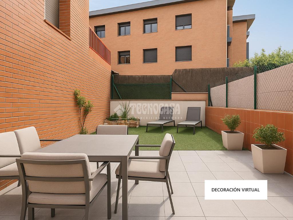 Vivienda de 110m2 + 40m2 de jardín + 2 terrazas (5m2 – 10m2). Consta de 4 dormitorios (3 dobles y 1 individual amplio), 2 baños completos, amplia cocina office con galería y un gran salón-comedor con salida directa al jardín.