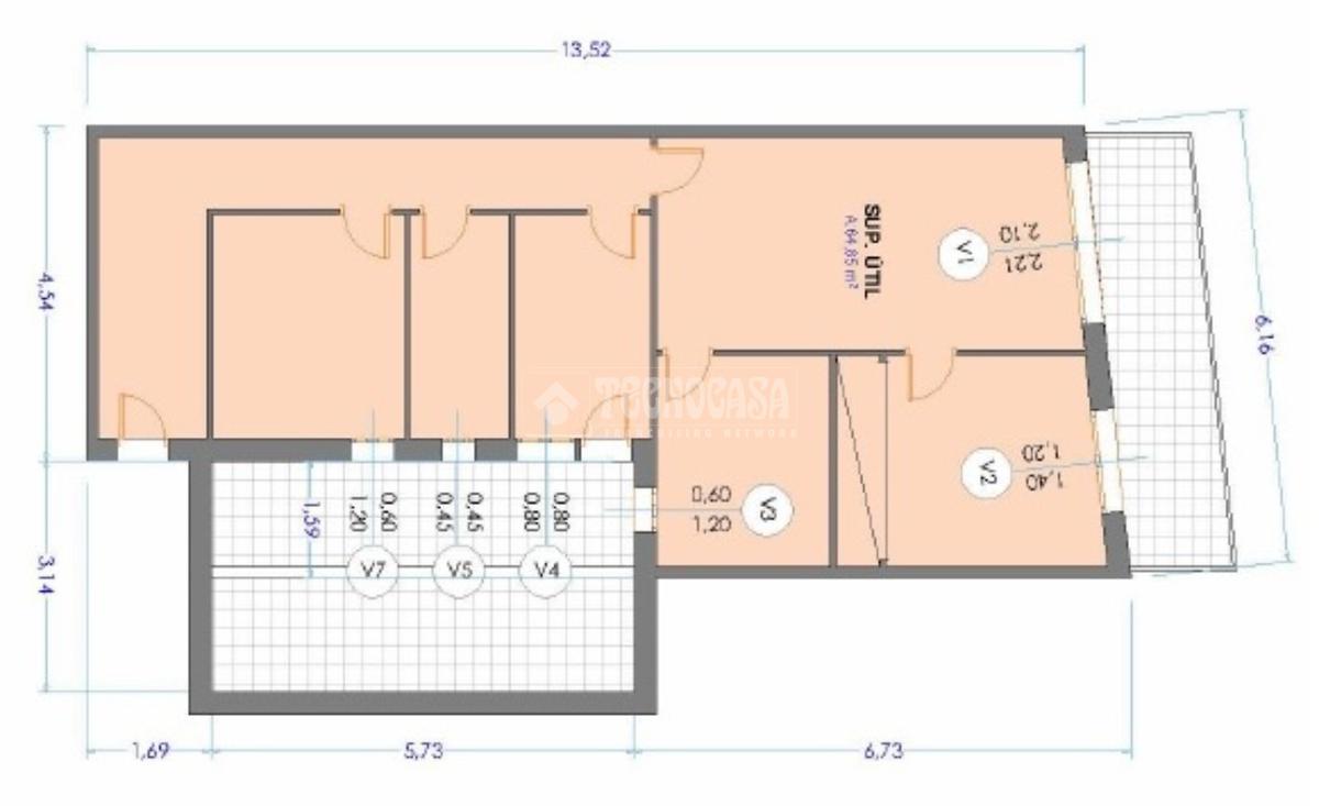 Vivienda de 83m2 catastrales, 3 dormitorios (2 dobles y 1 individual amplia), un baño completo, cocina office con salida a una práctica galería, y salón-comedor con salida a un amplio balcón.